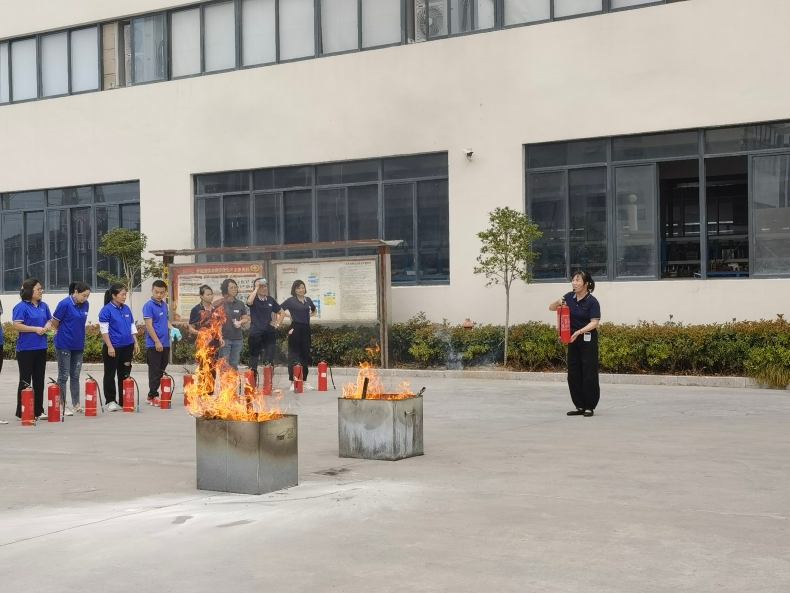 接着由公司领导亲自为大家作灭火器使用讲解,普及灭火器使用四要素:一提:提起灭火器;二拔:拔掉安全插销;三握:握住管子前端瞄准火苗;四压:用掌心向下压下把手,并朝火苗根部喷射灭火。